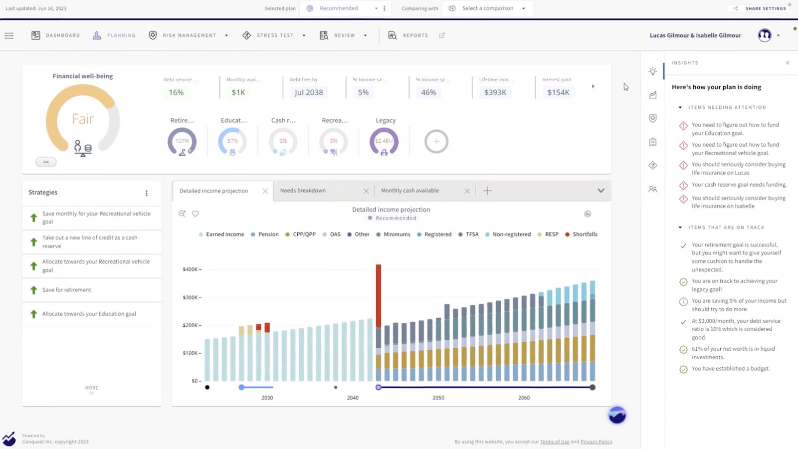 Every client can go through roughly 65 life transitions. Exploring scenarios used to take hours. With Conquest, our advisors can model these in real-time.