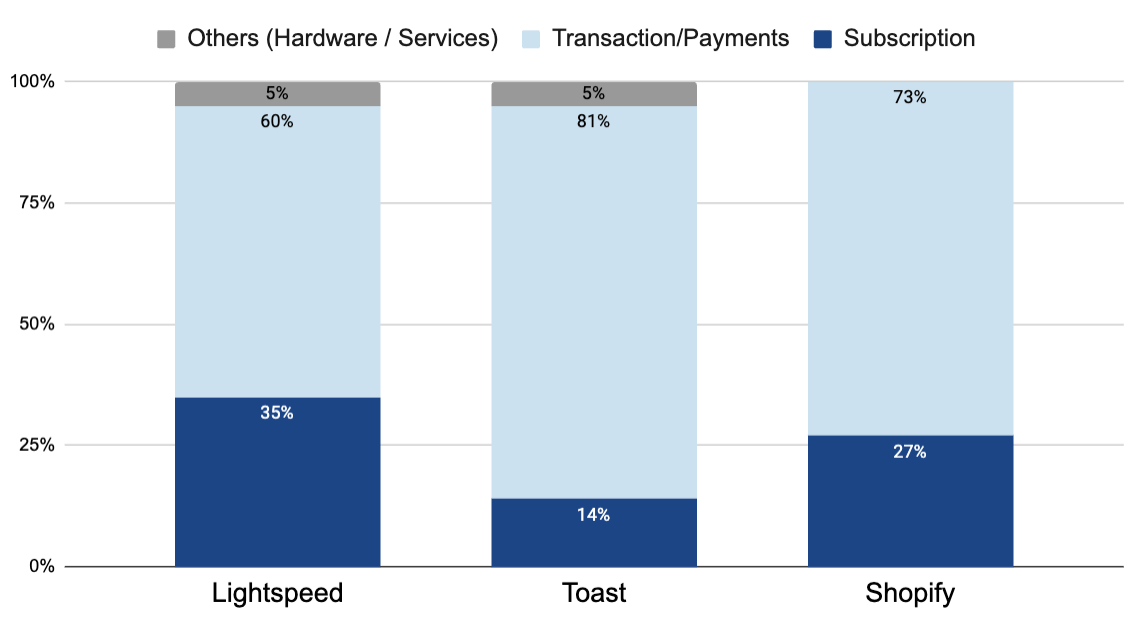 For leading platforms like Lightspeed, Toast, and Shopify, payment and transaction fees often generate over 60–80% of their total revenue. This model is far more scalable than a traditional subscription-only business. Instead of competing directly with banks, these platforms leverage their existing customer relationships and data to offer tailored financial solutions.